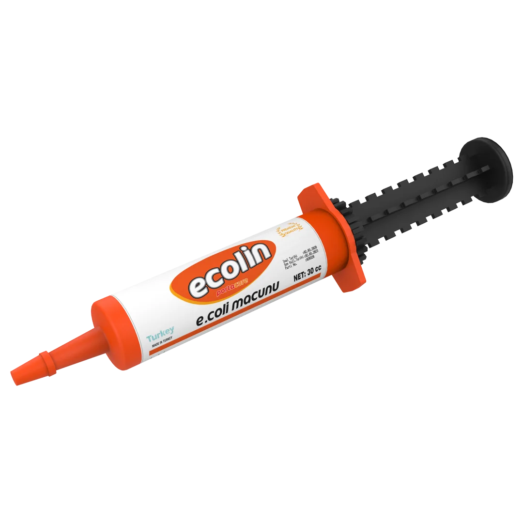 KULLANIM AMACI: PORTACURE ECOLIN, dışkının viskozitesini arttırıcı maddeleri yüksek düzeyde içeren tamamlayıcı bir yemdir. İçeriğindeki probiyotikler sayesinde bağırsak flora dengesini muhafaza eder ve böylece, buzağıların dışkı viskozitesinde düşmeye neden olan E. coli ve diğer patojenlerin azalmasına destek Olur. Formülasyonundaki diğer katkı maddeleri ile birlikte güçlü ekstraktlar ve ortamın pH'ını düşüren organik asitler, patolojik semptomlara karşı besin dengesizliklerini azaltarak bağışkllğa ve daha iyi bir hayvan sağlığına katkıda bulunur. KULLANIM TALİMATI: Dışkı viskozitesinin düşük olduğu dönemlerde, hayvan (buzağı, kuzu, Oğlak, tay gibi) başına sabah ve akşam 15 cc kullanılmalıdır. Analitik Bileşenler: Ham protein % 17,70; Ham selüloz % 0,90; Ham yağ % 28,50; Ham kül % 10,50 Potasyum(K) % 250 mg/kg; Sodyum(Na) % 300 Bileşen Listesi: Vitaminler (Vitamin K3, Vitamin B1, Vitamin B2, Vitamin B3, Vitamin B6), Probiyotikler (Bacillus subtilis, Enterococcus faecium), Bitkisel ekstraktlar (Esansiyel Yağlar), Koruyucular (Sodyum Benzoat, Potasyum Sorbat, Organik Asitler). YEM KATKI MADDELERİ: Vitaminler/ Besinsel yemkatkı maddeleri E160a Vitamin K3 (Sentetik Menadion) %0,5; 3a821 B1 Vitamini (Tiyamin) %0,2; E101 B2 Vitamini (Riboflavin) %0,25; 3a314 B3 Vitamini (Niasin) %0,5; 3a831 Vitamin B6 (Piridoksin) %0,2 Probiyotikler / Bağırsak Flora Düzenleyicileri / Zooteknik Yem KatkıMaddeleri Bacillus subtilis 3x 10⁷ CFU/gr; Enter«occus faecium 7x10⁷ CFU/gr. Bitkisel ekstraktlar / Fitojenik katkı maddeleri / Zooteknik yem katkı maddeleri Esansiyel yağlar Koruyucular/ Teknolojik yem katkı maddeleri E211 Sodyum Benzoat, E202 Potasyum Sorbat, Organik Asitler.